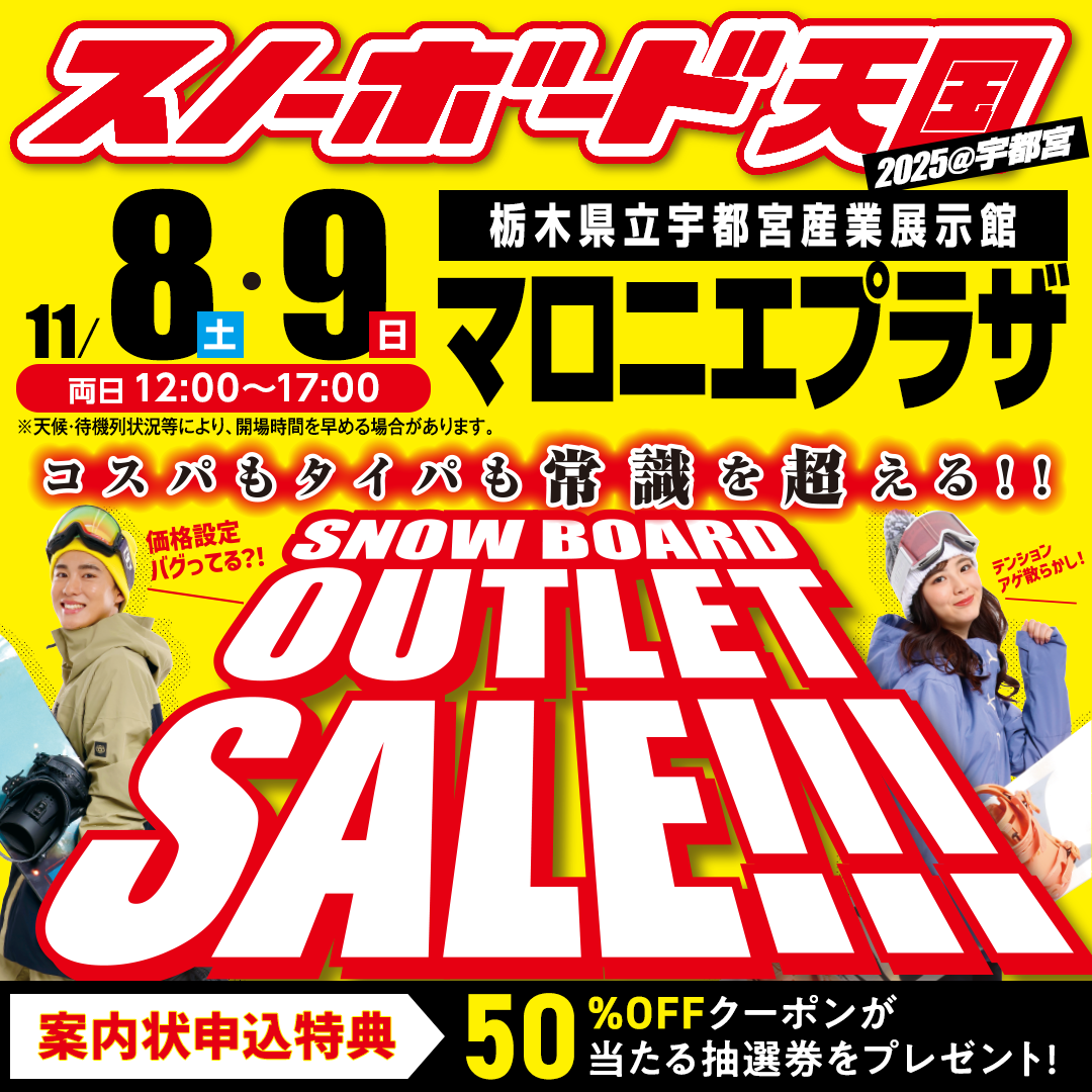 今度の週末は、宇都宮マロニエプラザで行われる「スノーボード天国」に、